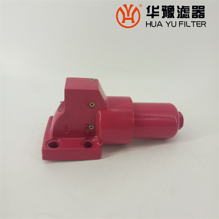 該過濾器的濾芯采用化纖過濾材質(zhì),具有過濾精度高,通油能力大,初始壓力損失小,納污量大等優(yōu)點,并裝有壓差發(fā)訊器及旁通閥。當濾芯堵塞到進出油口壓差為0.35MPa時,便發(fā)出開關信號,此時應更換濾芯。如果不能馬上停機或無人來更換濾芯,裝在濾芯上部的旁通閥會自動開啟,以保護系統(tǒng)。