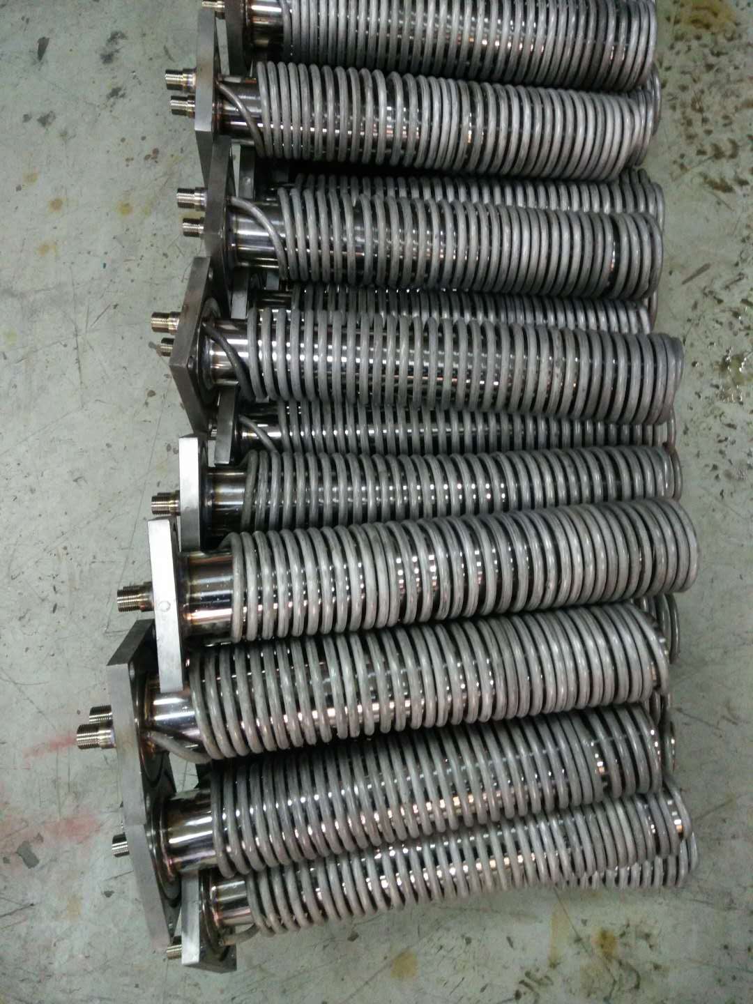 外筒體和盤管才用法蘭聯(lián)接,更換盤管或?qū)鋮s器進(jìn)行清洗,只需松開法蘭聯(lián)接螺栓,取出盤管,無需拆卸冷卻器筒體。非常方便。
