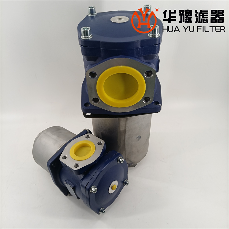 該過濾器的濾芯采用化纖過濾材質(zhì),具有過濾精度高,通油能力大,初始壓力損失小,納污量大等優(yōu)點(diǎn),并裝有壓差發(fā)訊器及旁通閥。當(dāng)濾芯堵塞到進(jìn)出油口壓差為0.35MPa時,便發(fā)出開關(guān)信號,此時應(yīng)更換濾芯。如果不能馬上停機(jī)或無人來更換濾芯,裝在濾芯上部的旁通閥會自動開啟,以保護(hù)系統(tǒng)。