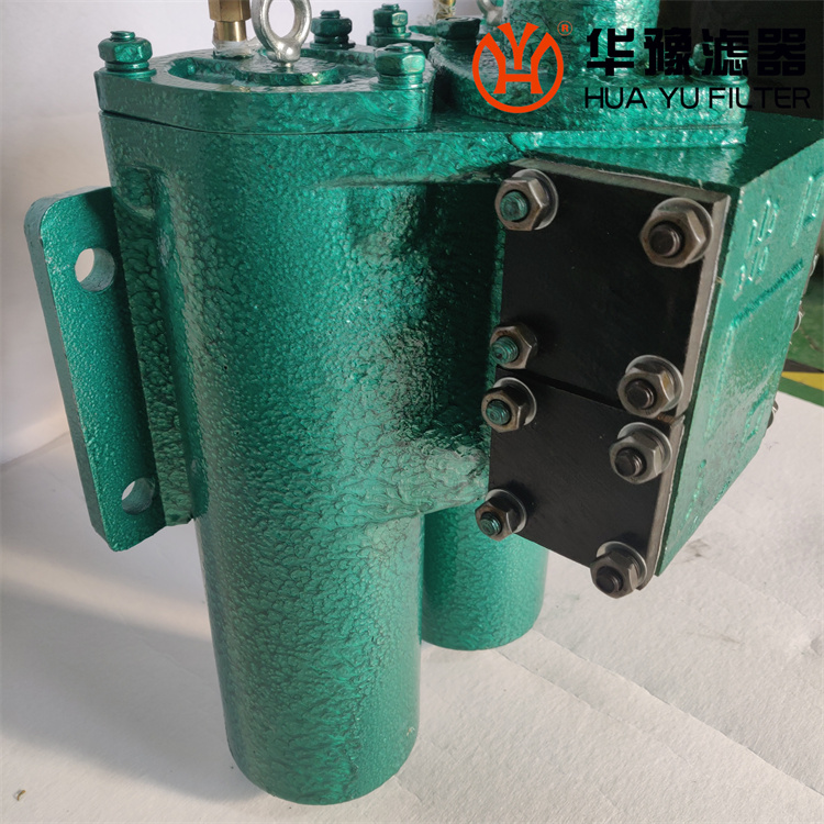 該由兩只單筒過濾器,兩只單向閥、換向閥、旁通閥、發(fā)訊器等組成,它可在系統(tǒng)不停機(jī)狀況下更換濾芯,適用于連續(xù)工作的中低壓液壓系統(tǒng)。當(dāng)其中一只過濾器的濾芯在工作過程中堵塞至壓差發(fā)訊器壓力值時(shí),發(fā)訊器動(dòng)作,它可按上電源及指示器的提示人們應(yīng)更換此濾芯。更換濾芯時(shí),只要轉(zhuǎn)換向閥手柄到另一位置后,備用的過濾筒開始工作,旋開已堵塞的過濾筒放油螺塞放完油后,再旋下外殼,即可更換濾芯。